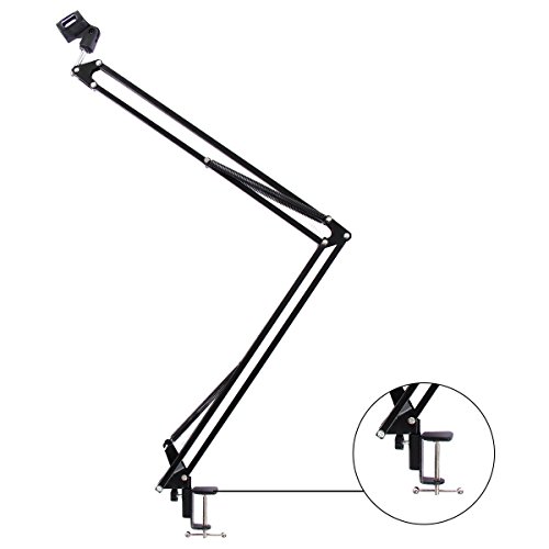-. Brand : Tonor -. EAN : 0603803319944 -. Feature : Maneuverable arm, easy to adjust, easily portable. / The length of each arm is 18.5 inches,longer than the original one. / Dual suspension springs on each boom arm prevent microphone from dropping. / High quality metal body offers reliable durability. The microphone stand can be attached to desktop up to 1.97 inches thick / The maximum weight capacity of the microphone stand is 2.2lbs. -. IsAutographed : 0 -. IsMemorabilia : 0 -. Label : TONOR -. Manufacturer : TONOR -. PackageQuantity : 1 -. ProductGroup : Musical Instruments -. ProductTypeName : SOUND_AND_RECORDING_EQUIPMENT -. Publisher : TONOR -. Studio : TONOR -. Title : TONOR Microphone Suspension Boom Scissor Arm Stand(Upgrade Microphone Stand) -. UPC : 603803319944
