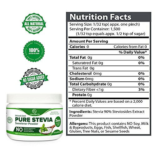 Pure Stevia Powder Extract Sweetener - Zero Calorie Sugar Substitute - No Artificial Ingredients