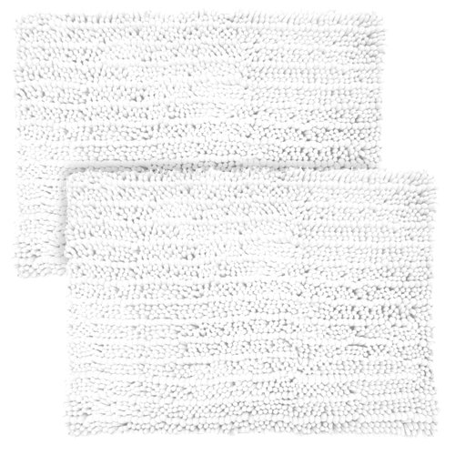 Elegant Bath Set of 2 Microfiber Bath Mat, Non slip Backing, Ultra Soft, Extremely absorbent and Fast Drying. Durable, Easy Cleaning, Machine Washable. 5 different colors. White, 17"x24"