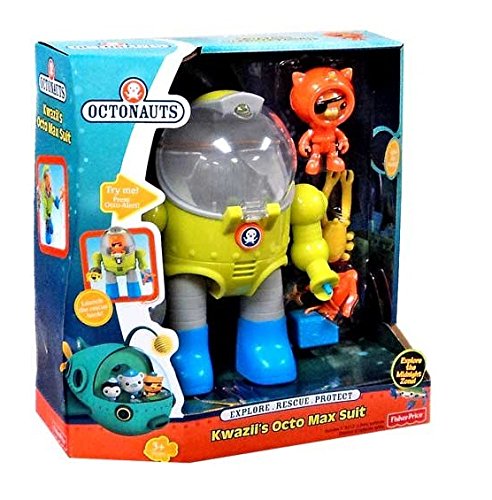 Studio : Fisher-Price Publisher : Fisher-Price Binding : Toy Product Description Explore deep depths of the Midnight Zone with Kwazii's Octo MAX suit! The Octo MAX suit comes fully loaded with an articulated Kwazii Figure, Zipline Shooter, MAX Suit and Siphonophore Deep Sea Creature. Open up the MAX Suit dome and place Kwazii inside. Deploy the Zip-Line by pressing on the bellows on the back of the suit and watch as the rescue hook shoots into the sky! Press the Octo Logo on the front of the suit to see lights and hear SFX - the light will help him navigate the deep waters Arms and legs on the MAX Suit articulate Kwazii's suit will be molded in NEON colors to match the Deep Sea Octo Lab Playset and Rovers. All tools from the Octo Rovers and Deep Sea Lab will be interchangeable with these suits. 0