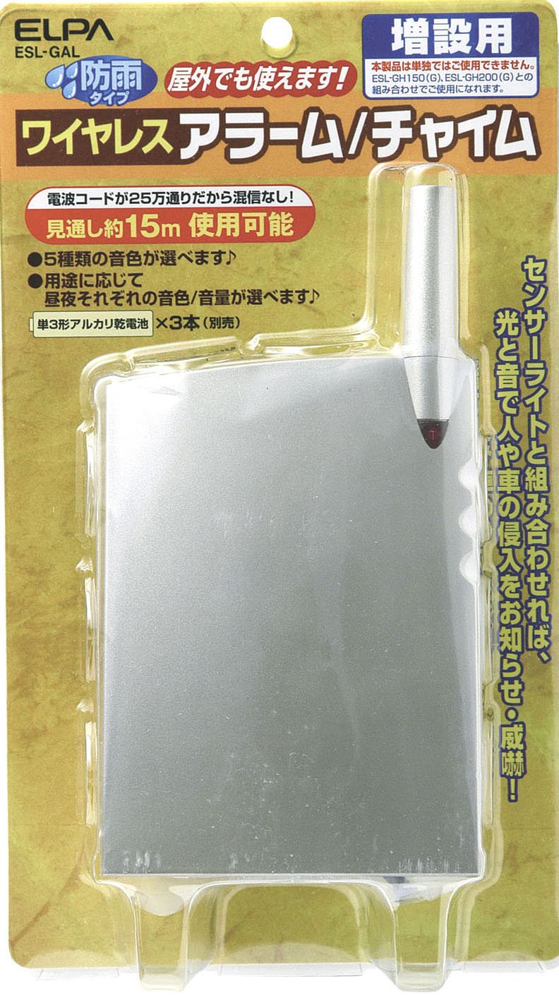 ● Combined with sensor light, informs people and vehicles intrusion with light and sound · Wireless alarm / chime that can threaten