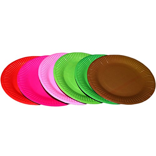 - Package: Round Paper Plates, 50 pcs in total, 10 for each color.