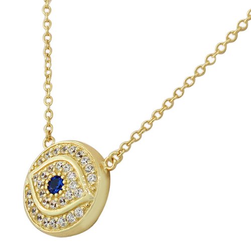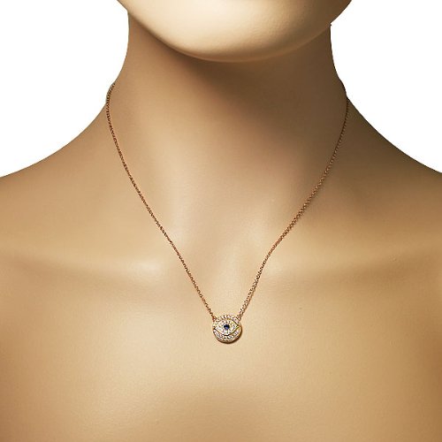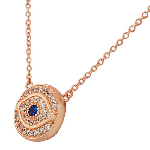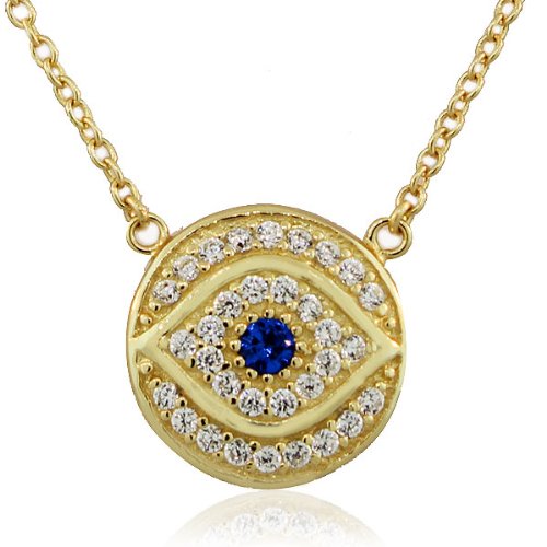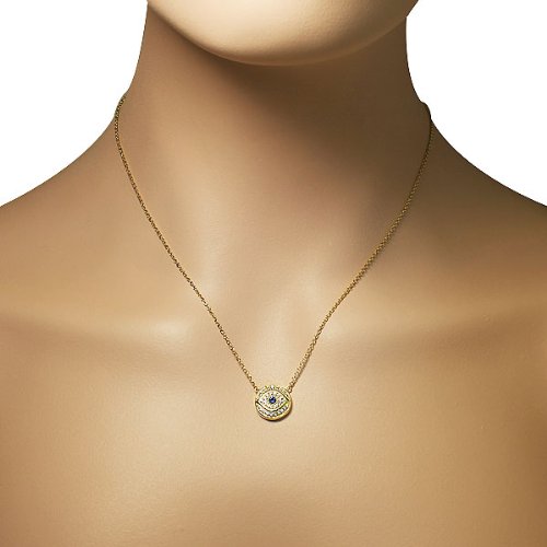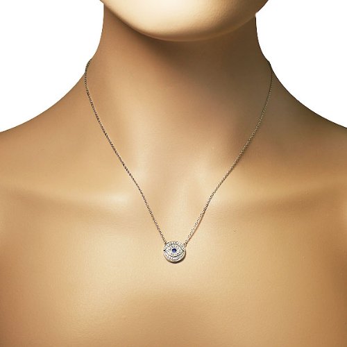 -. Title : 925 Sterling Silver White Blue CZ Round Hamsa Evil Eye Womens Pendant Necklace