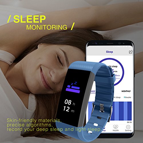 【HEART RATE & SLEEP MONITOR& BLOOD PRESSURE】The activity bracelet can monitor your heart rate and blood pressure to help you do exercise scientifically and accurately monitor total effective sleeping time and motions every night, you can better understand your sleeping quality.