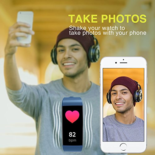 【Take photos and Find Smartphone】 Connect the band to APP. You can shake wrist to take photos after wear the band. after long press on the "fine" icon on the band, the phone rings,you can find the location of the phone