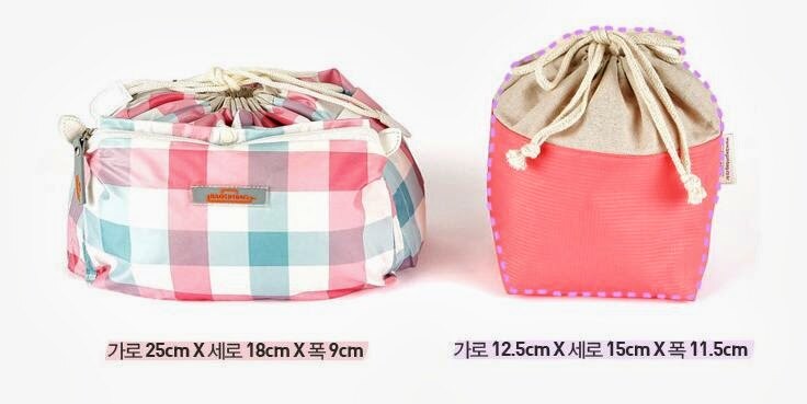 - Bag 1 (netted): 26cm x 20cm x 7cm - Bag 2 (for bottles): 12.5cm x 15cm x 11.5cm - Bag 3 (square shaped): 27cm x 17cm x 7cm - Bag 4 (small waist pouch): 19.5cm x 8cm x 6cm - Material: Polyster