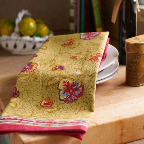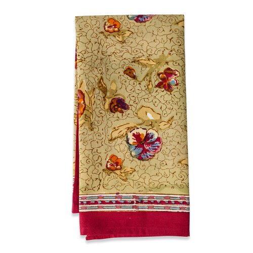 Couleur Nature 20-inches by 30-inches Pansy TeaTowels, Red/Green, Set of 3