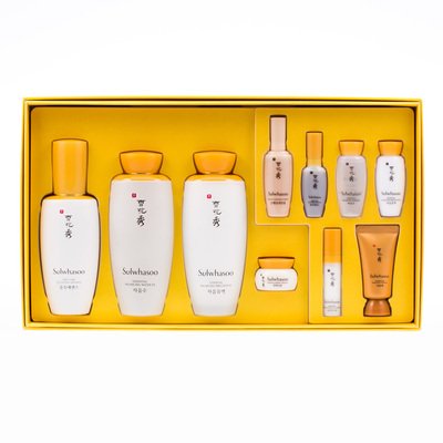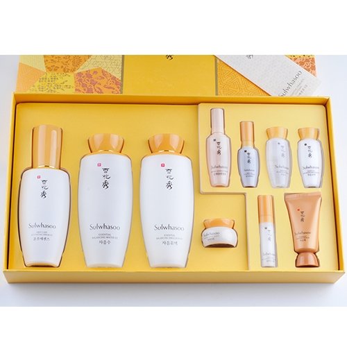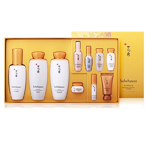Studio : Amore Pacific Publisher : Amore Pacific Binding : Misc. Product Description Sulwhasoo First Care Activating Serum 90ml 3 Fluid Ounce Essential Balancing Water EX 125ml/4.2oz Essential Balancing Emulsion 125ml/4.2oz 1. First Care Activating Serum EX 8ml/0.27oz 2. Essential Rejuvenating Eye Cream EX 3.5ml/0.12oz 3. Essential Firming Cream EX 5ml/0.17oz 4. Gentle Cleansing Foam Ex 15ml 5. Overnight Vitalizing Mask EX 15ml 6. Essential Balancing Water EX 15ml/0.5oz 7. Essential Balancing Emulsion 15ml/0.5oz 0
