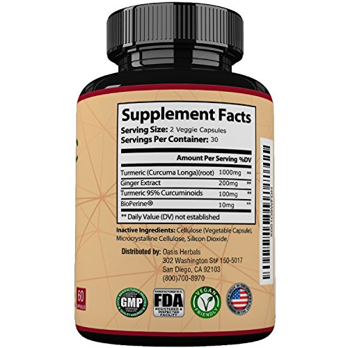 -. Title : Turmeric Curcumin Supplements | Turmeric Capsules | Tumeric with Black Pepper Capsules | Ginger Capsules | Curcumin with Bioperine Anti Inflammatory Supplement | Oasis Herbals 95% Curcuminoids Vegan