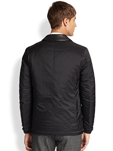 -. Binding : Apparel -. Brand : -. Color : Black -. Department : mens -. EAN : 5045450109984 -. Feature : Full zip and snap front / Two chest pockets, two front flap pockets with snap closure / Ribbed sleeves / Nylon/polyester/leather / Dry clean -. PackageQuantity : 1 -. ProductGroup : Apparel -. ProductTypeName : OUTERWEAR -. Size : Small -. Title : London Men's Black Hopton Travel Coat Jacket Small
