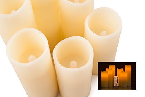 Vanilla Scented Pillar Flameless Candles made of real wax by FVM Candles - with flickering LED including remote control plus timer battery operated - safe with small kids and ideal for home decor