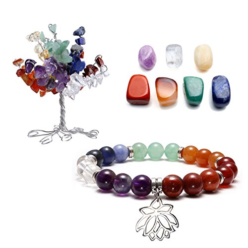 - Natural Hand-made Tumbled Gemstone Money Tree & 7 Chakra Irregular Gems & Chakra Bracelet Set, brings wealth and luck.