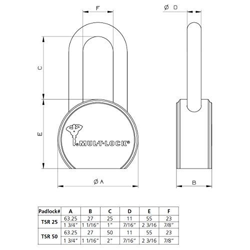 Mul-t-lock TSR-Series padlock - 7/16" Shackle (4 Chamber)
