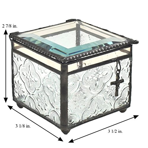 -. Binding : Kitchen -. Brand : J Devlin Glass Art -. Color : Clear -. EAN : 0736902265710 -. Feature : Personalize with a two-letter monogram, border engraving is standard / Dangling metal cross charm accents the front of this stained glass jewelry box / First Communion, Confirmation, Baptism or New Baby Gift / Handcrafted stained glass jewelry box made with lead free solder to protect you and the environment / Designed and Manufactured by J Devlin Glass Art 3"x3"x2 3/4" -. IsAutographed : 0 -. Label : J Devlin Glass Art -. Manufacturer : J Devlin Glass Art -. Model : Box 631 EB 212-2 -. MPN : Box 631 EB 212-2 -. PackageQuantity : 1 -. PartNumber : Box 631 EB 212-2 -. ProductGroup : Home -. ProductTypeName : HOME -. Publisher : J Devlin Glass Art -. Size : 3x3 -. Studio : J Devlin Glass Art -. Title : J Devlin Box 631 EB 212-2 Monogrammed Stained Glass Personalized Keepsake Jewelry Box with Cross Charm -. UPC : 736902265710
