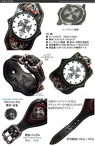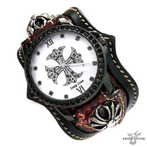 원본상품명: 腕時計 メンズ 革 レザ? 蛇革ベルト ブラックジルコニア クロス 文字盤 ブレスウォッチ クロス コンチョ DZBW-032 (レッド)