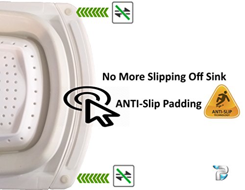 - Durable, BPA free, lightweight sink strainer with extending rubber-grip handles, with built in non slip padding under the handles