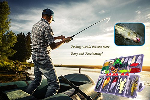 -. Feature : The Bionic bait lures and baits are special for fishes 3D eyes. Make fish think the lure is a real fish then you catch them easier. / Perfect for ocean boat fishing, ocean rock fishing, ocean beach fishing, lake, river, reservion, pond and stream / This set contains 6 different baits:Crankbaits 1pcs,VIB 1pcs, Topwater Lures 1pcs, Plastic Worms 33pcs,Jigs 5pcs, fish-shaped soft bait 2pcs,simulation of shrimp 2pcs. All lures are widely used and carefully selected,meet the needs of different varieties of fish you catch. Other accessories 32 pcs.Bouth of them are very lifelike and swim well. / Package include - 77pcs Fishing Lure Set.Made of high quality metal and soft plastic, can not be easily broken with firmness and certain toughness,when you go fishing, you will not be affected by the quality of fishing,Let you play your energy.The plastic fishing tackle box is free for you, size is about 17.5cmx9.5cmx3cm. / Compact and easy to take arround. We ensure that every product is true, every piece of bait are carefully produced, for you to show a good quality of the products is our responsibility.Very good customer service. If any problem, please contact our customer service and we will reply you within 24 hours.
