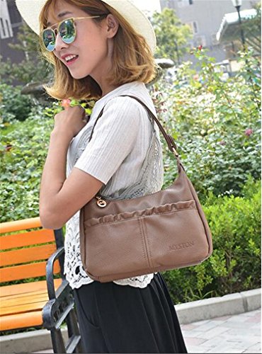 Soft premium pu Leather Hobo Purse,fully-lined with brown fabric and comes with a short and long shoulder strap.