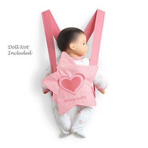 Your little girl can keep her Bitty Baby doll close to her heart when she's on the go! This embroidered star-shaped carrier is made of soft fabric, and features adjustable straps that criss-cross in back for a comfy fit.