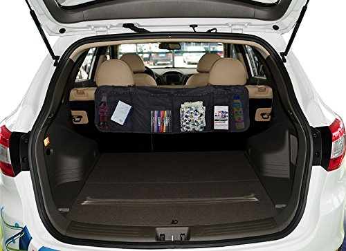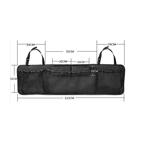 5 different size pockets for multifunction use & the most storage space possible to hold sports gear, dog supplies, tools, toys and emergency equipment etc. A 22" roomy center mesh pocket to keep bulky items, two 12" side mesh pockets to keep larger items, and two 8" x 4" inner pockets for smaller items
