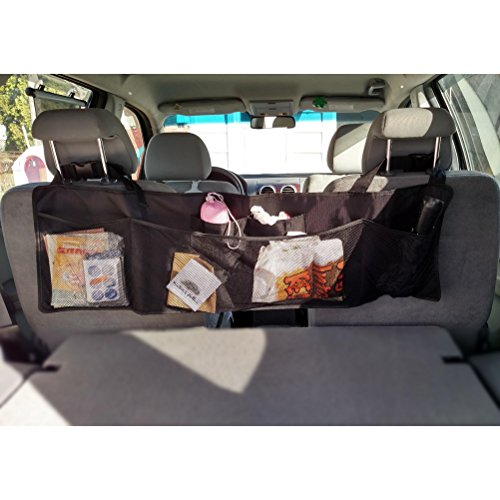 Homaker Car Backseat Organizer Heavy Duty Multipurpose Foldable 5 Pockets Cargo Net Best Car Organizer, Truck Storage Organizers Black
