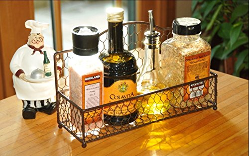 Deep Depth Wide Kitchen Storage Rack (Countertop or Wall Mountable), Dark Brown | Single Tier | Large Metal Chicken Wire Spice Rack & Cooking Oil Organizer Shelf, by Cloverwild