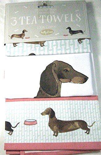 Debonair Dogs Tea Towels Coordinating Set of 3 Dachshunds 100% Cotton