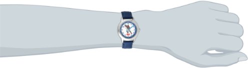 Keep track of time with this officially licensed marvel stainless steel kid's time teacher watch by ewatchfactory on your wrist. The timepiece displays artwork from your favorite marvel character on the face, and is designed with labeled "hour" and "minute" hands to help young ones learn how to tell time. This classic watch has a polished and matte steel finish and a precision japan movement for accurate time keeping and a 1 year manufacturer warranty.Feature