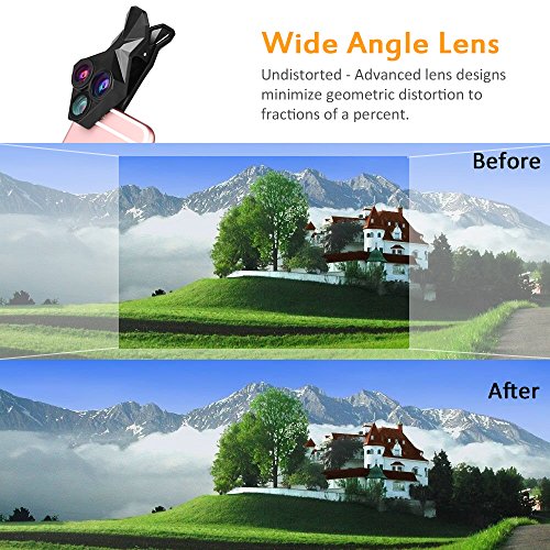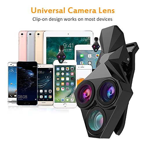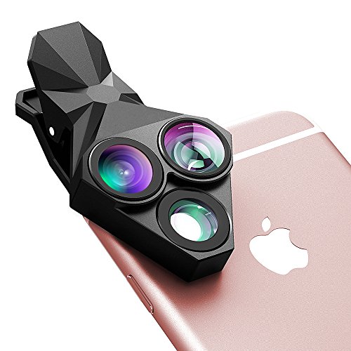 - 1. 3 IN 1 CLIP-ON LENS KIT: 160°Fisheye Lens + 0.65x Wide Angle + 20x Macro Lens. With fisheye lens, you can see the images with a 160 degrees on your phone and enjoy the fantastic fish-eye world of images. With 20x macro lens, it is ideal for close-ups. 0.65x Wide angle is to capture a wider area for breathtaking landscape photos.