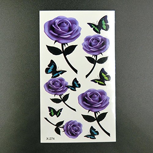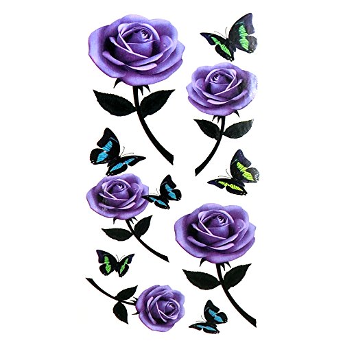 Oottati Small Cute Temporary Tattoo Purple Rose (2 Sheets)
