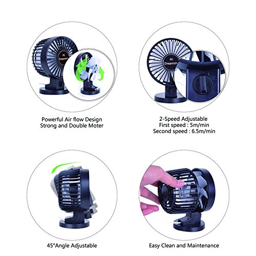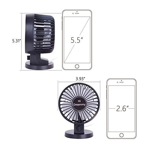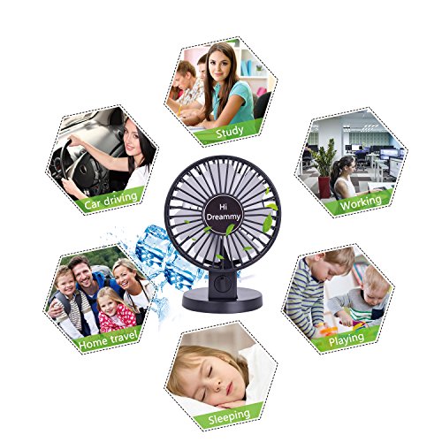 HiDreammy Mini Fan USB Fan( Quiet,Powerful,2-Speed,Coaxial Rotor,Adjustable)-Portable Fan USB Desk Fan USB Table Fan Small Fan Office USB Fan Home USB Fan Car Fan Men/Female/Kids Fan 4‘’-Black