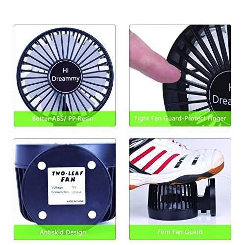 【STURDY and SAFE USB DESK FAN】 The USB fan is sturdy and sits very nicely. The base of fan does not wobbly or shake but with great air flow. Each USB personal fan is made of firm, durable and lightweight plastic, enabling long service life. The blade is well protected and no little fingers can touch the blade. Modish and special design makes you stand out.