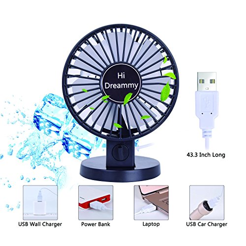 【PORTABLE and CONVENIENT USB DESK FAN】The USB FAN is powered by a USB cord, which has a nice length of 43.3” , so you could move the fan to the place near you. The USB Fan can be connected to a computer, laptop, power bank, car USB outlet, home USB outlet or other USB outlet. It is universal to use in office or at home for adults and kids. The USB fan, just 4”, is light weight and easy to carry around. You could put the mini USB fan in your bag when outside, like camping, hotel travel.