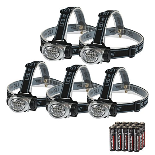 EverBrite 5-Pack LED Headlamp Flashlight for Running, Camping, Reading, Fishing, Hunting, Walking, Jogging - Headlamps Waterproof, Long Battery Life (Batteries Included), Durable, Lightweight