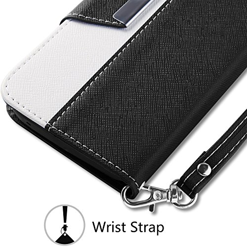 iPhone 5 Case, iPhone 5S Case, Vakoo WALLET Series PU Leather TPU Bumper Slim Fit Flip Magnet Card Slot Case Cover for Apple iPhone SE 5 5S ( Black White)