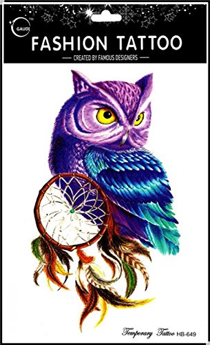 Wonbeauty Fake and real temp tattoo stickers 4pcs different colorful owl temporary tattoo in a package