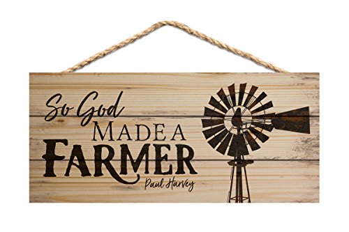 So God Made a Farmer Vintage Windmill 10 x 4.5 Inch Pine Wood Decorative Hanging Sign
