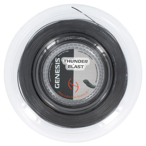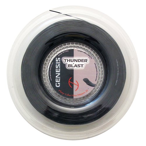 Studio : Genesis Publisher : Genesis Binding : Sports Product Description Genesis Thunder Blast offers amazing repulsion power and controlled spin. Players who come in to the net a lot will appreciate the soft capabilities of this string with its impeccable touch and comfort. Thunder Blast has also some of the best tension retention from any multifilament string thanks to a very unique construction process.?The center core utilizes a very elastic monofilament compressed and heated to stretch easily. The outer core is twisted by soft elastic multifilament's. A coating resembling a rough surface is added for increased spin. 0