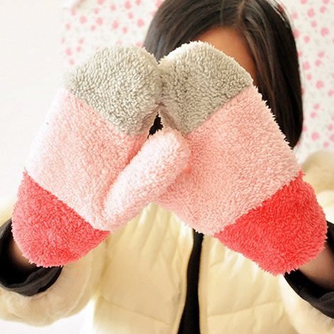 AStorePlus Korea Stylish Thick Plush Glove Soft Winter Warm Fluffy Full Finger Mittens Gloves, ...