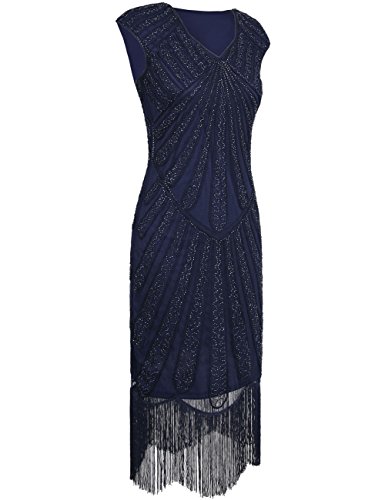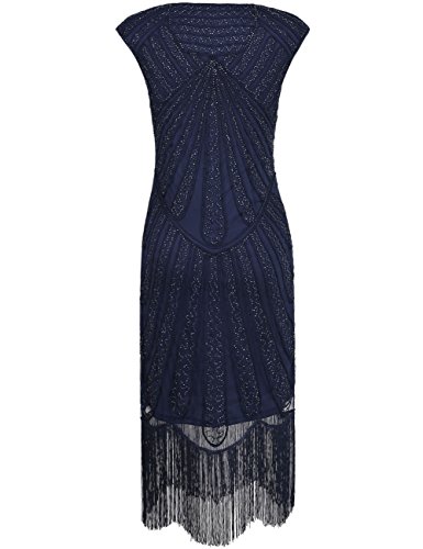 Kayamiya Women's Retro Inspired 20s Beaded Embllished Gatsby Flapper Lace Prom Dress
