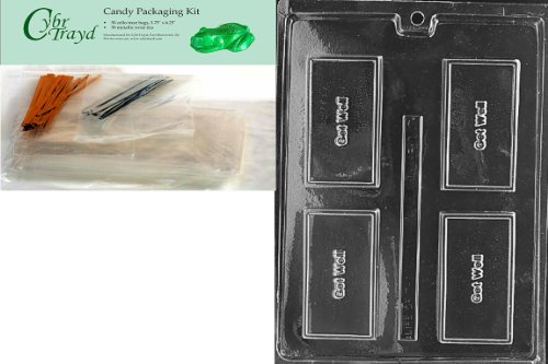 Cybrtrayd "Get Well" Business Card Chocolate Candy Mold with Packaging Bundle of 50 Cello Bags, 25 Gold/25 Silver Twist Ties and Chocolate Molding Instructions