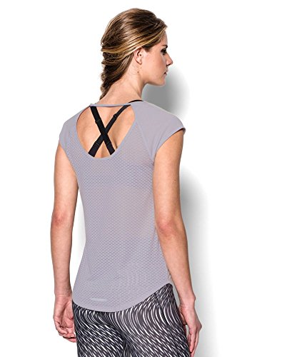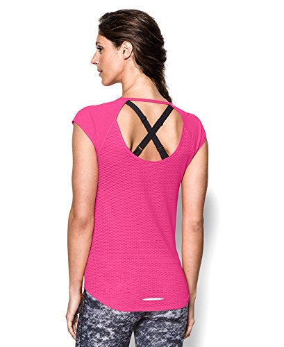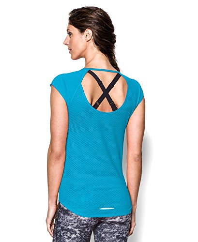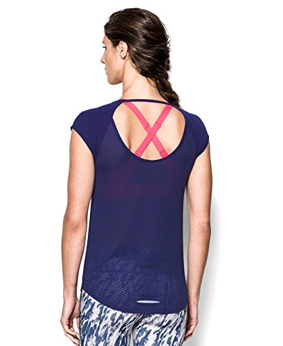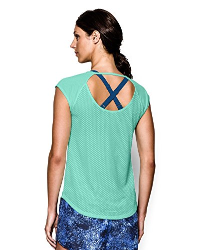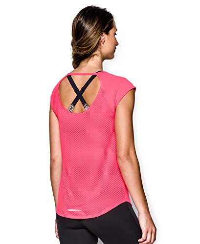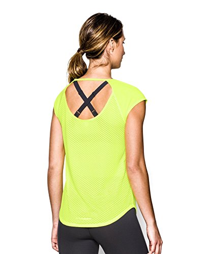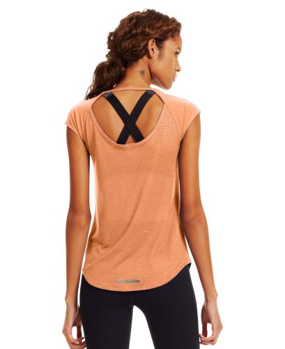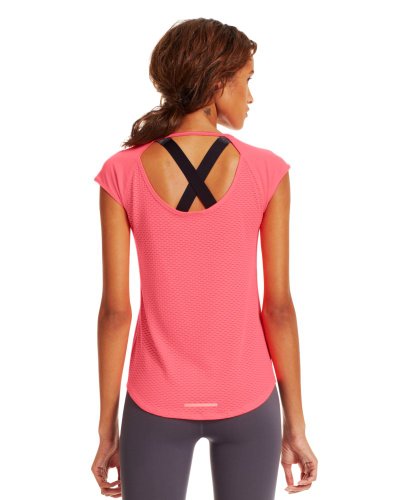Soft, ultra-lightweight fabric delivers superior breathability and incredible comfort. Signature Moisture Transport System wicks sweat to keep you dry and light. Ergonomic flatlock seams allow you to move free without fear of chafing. Large, open-hole performance mesh back panel for unrivaled breathability. Raglan sleeves unlock mobility for serious range of motion. Slight drop-tail detail for just the right amount of coverage. Feminine scoop neck front with large open keyhole back detail. 360° reflectivity offers extra safety during low-light runs. Polyester/Rayon. Imported.Feature