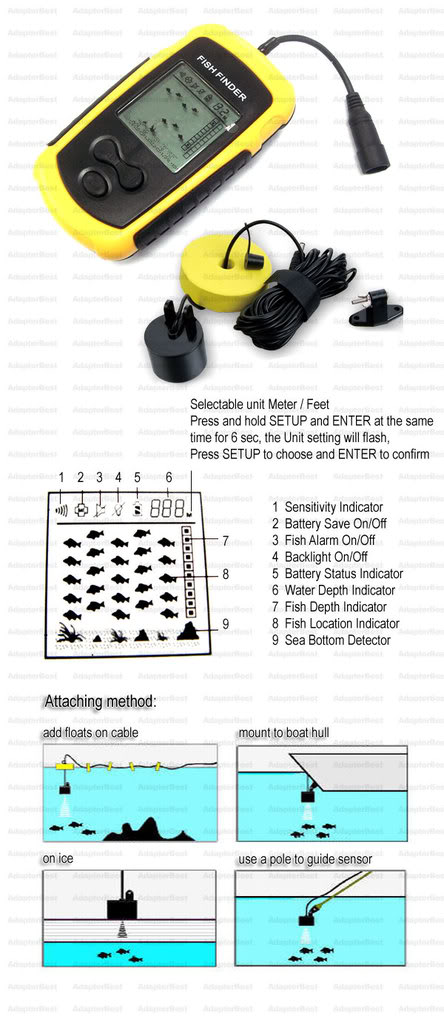 This amazing product is especially designed for amateur and professional fishermen alike, to find out the location of fish and depth of water. The unit can be used in ocean, river or lake and is fantastic for detecting schools of fish in any particular area. Using amazing and innovative technology, this portable fish finder is the good tool to bring the fish to you!