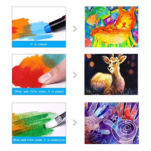 3 IN 1 EFFECT---Has 3 different functions for drawing or painting: Crayon, Pastel(add little water), Watercolor(add a little water)