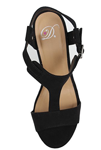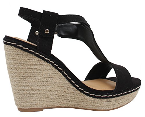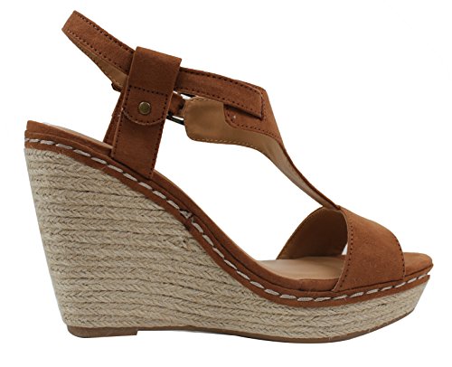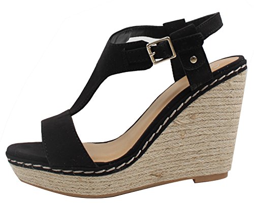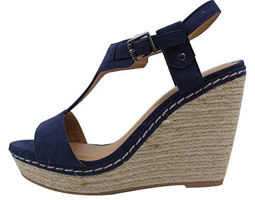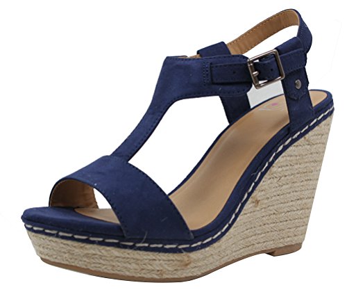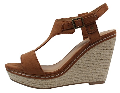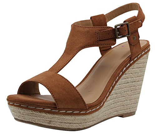 Delicious Women's Open Toe T Strap Espadrilles Wedge, Red, 55 M US