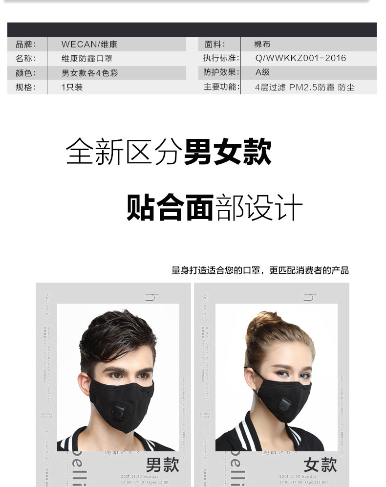 防尘透气口罩男女潮款个性防雾霾PM2.5防粉尘过滤呼吸阀口罩