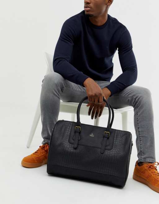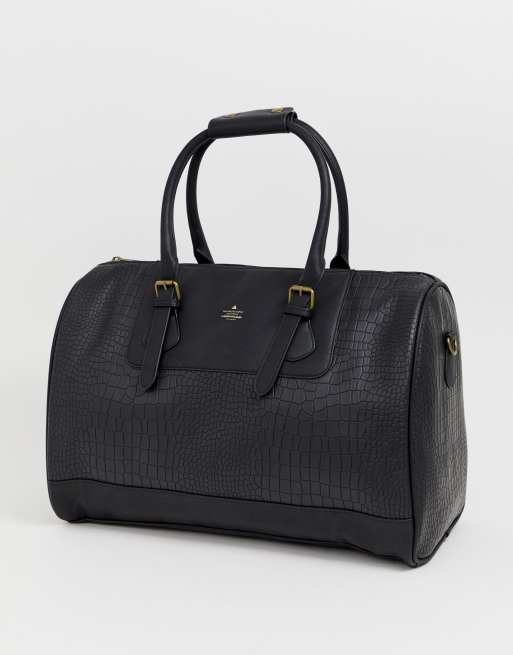ASOS DESIGN Carryall In Black Croc Effect Faux Leather