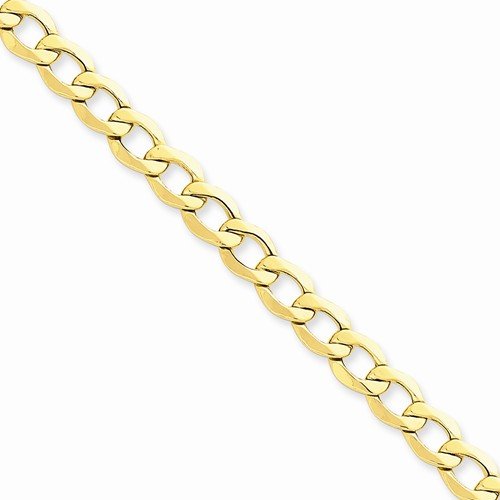 -. Title : 14k Yellow Gold 7.0mm Semi Solid Curb Cuban Link Link Bracelet - with Secure Lobster Lock Clasp