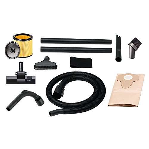 -. Feature : Includes: 7 ft. hose, 12 ft. Cord with Cord Wrap, Air Control Nozzle, 2 Extension Wands, Multi Surface Floor Nozzle, 2-in1 Utility Nozzle, Crevice Tool, Round Dust Brush, standard cartridge filter, dust bag and reusable foam sleeve / On Board Accessory Storage, including on the rear base / Dust sealed switch and Balanced top handle design / Weather resistant design / 2 Year Warranty