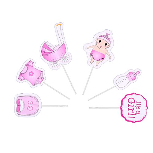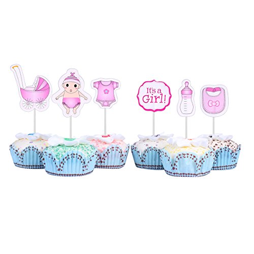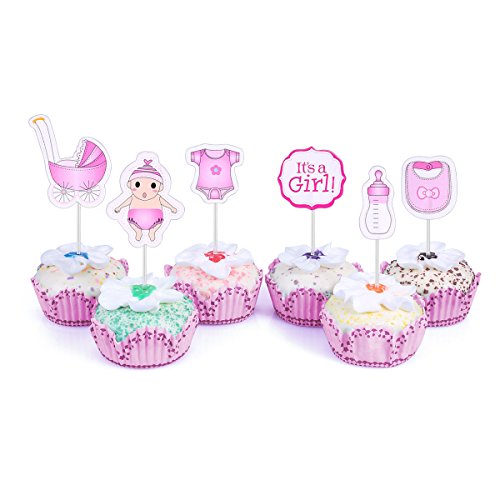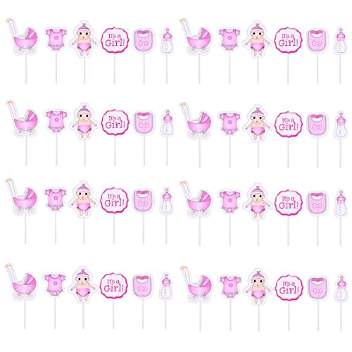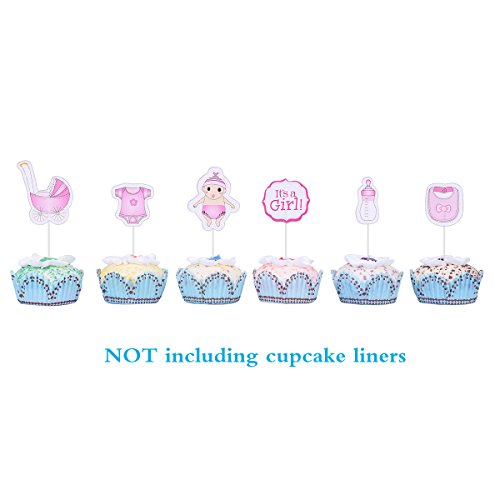 48 Cupcake Toppers It's a Girl Baby Shower Kids Party Cup Cake Decorating Supplies Pink